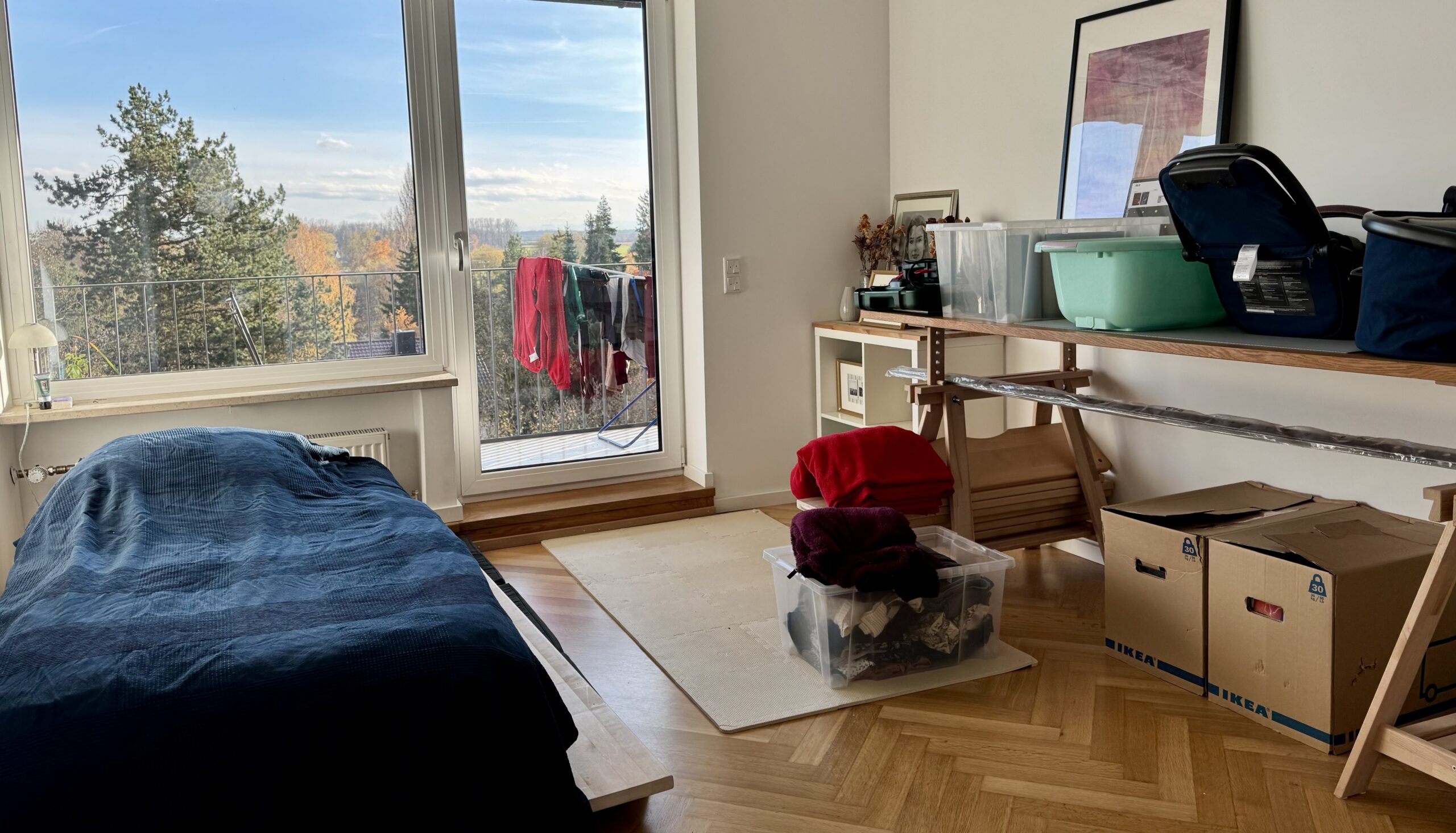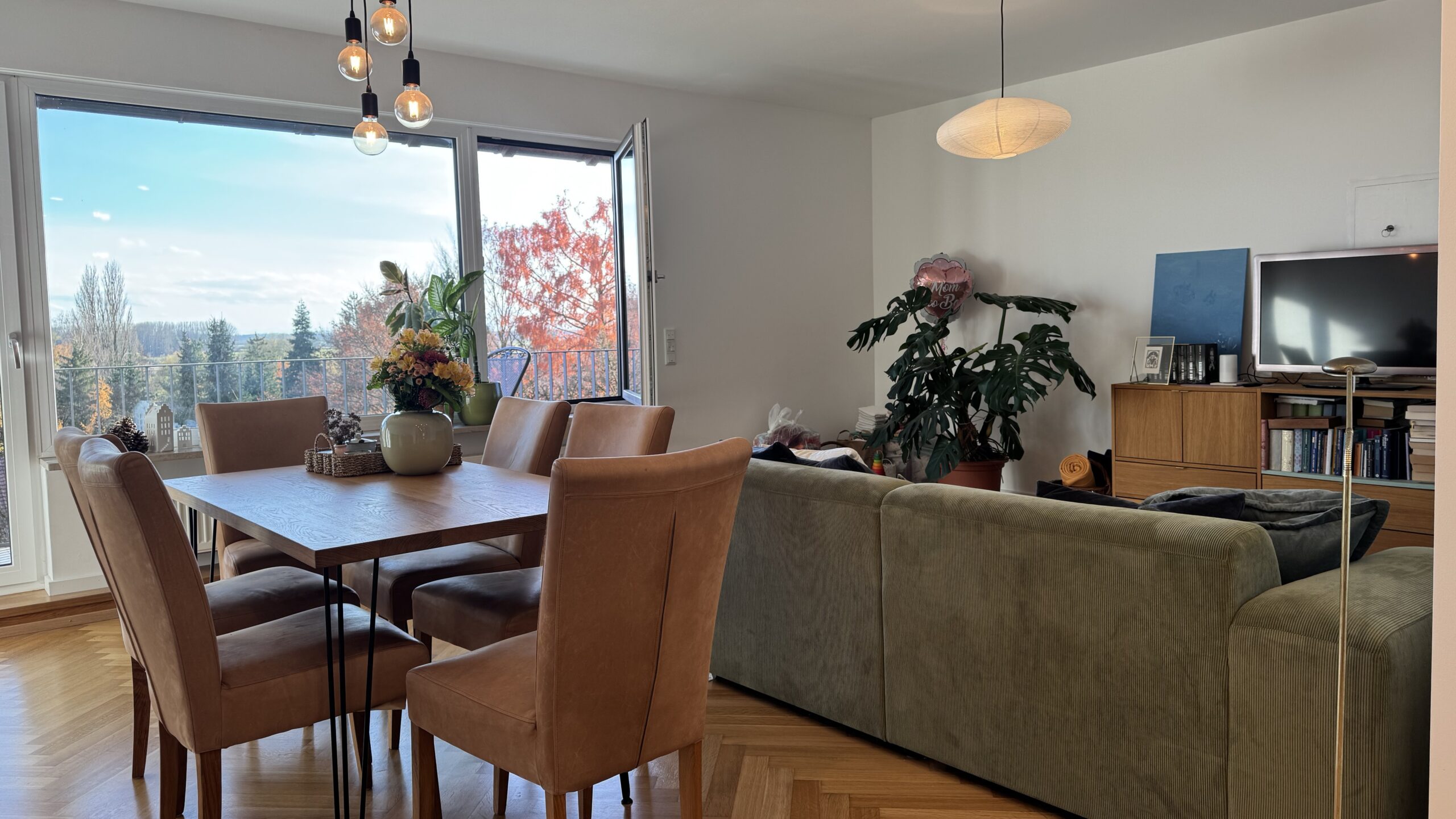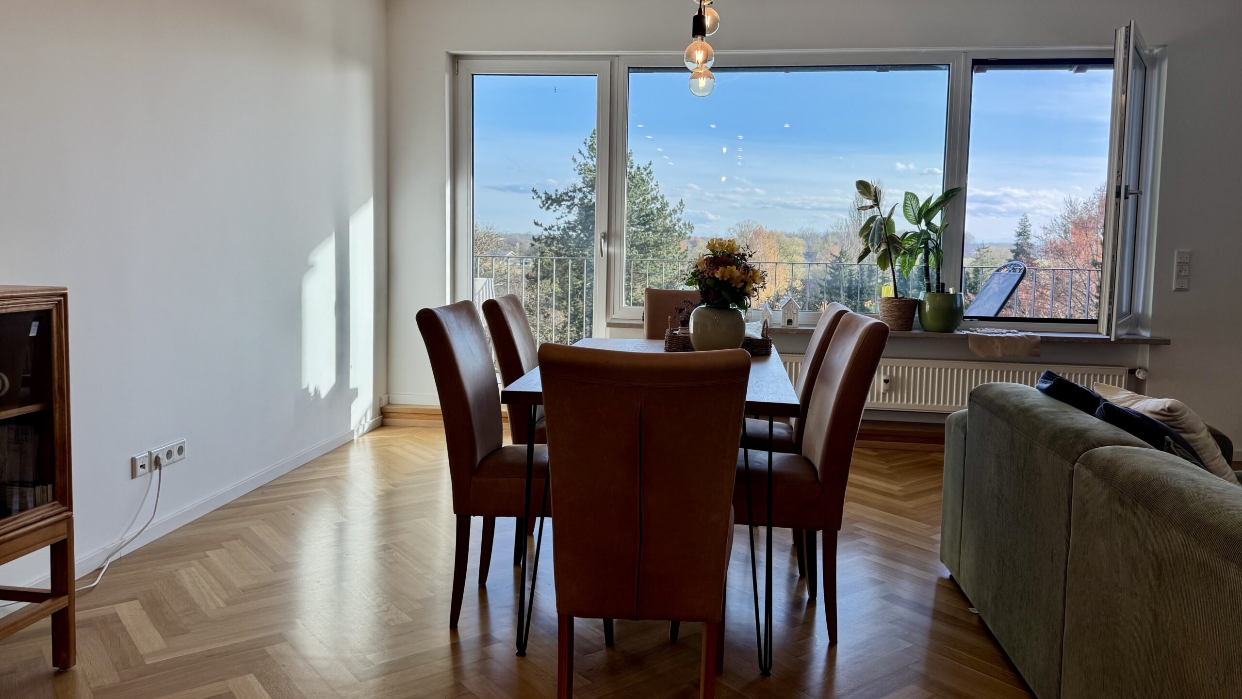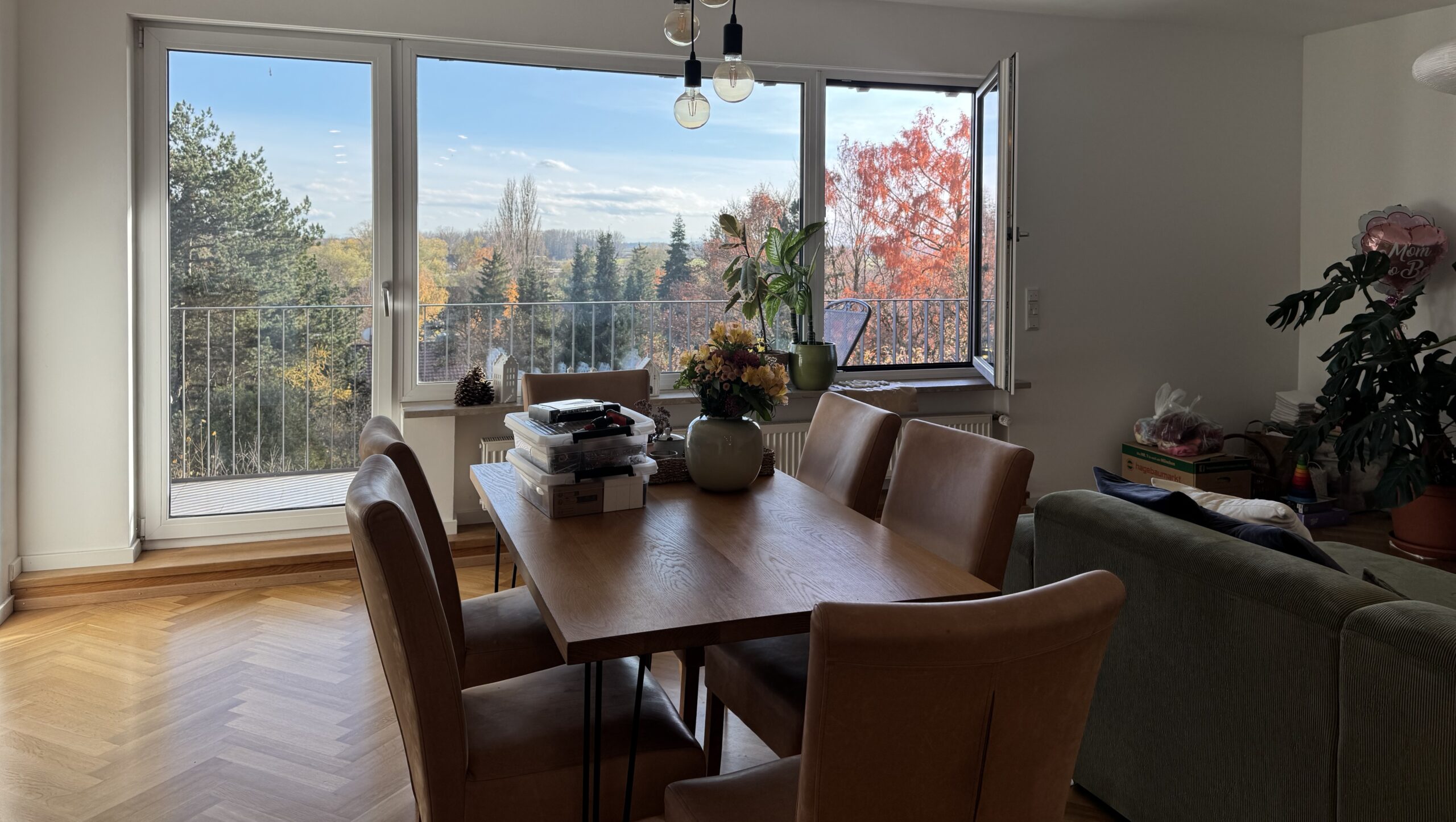 Dank der Südwest-Ausrichtung sind die Räume lichtdurchflutet. Vom großzügigen Balkon (ca. 18 m²) genießen Sie bei klarer Sicht sogar den Blick auf die Alpen.